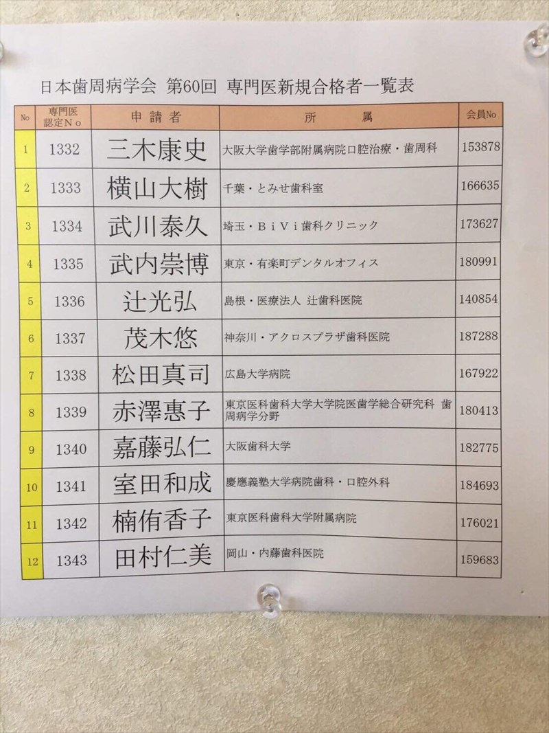 今回は勿論、歯周病治療の勉強とアップデートが第一(特にテーマが低侵襲で私が得意とするマイクロスコープの歯周治療の話もありました。)でしたが前からブログにも書いている様に私は歯周病専門医のライセンスを取る為この9年精進してきました。その合格発表を見に行く為でもありました。