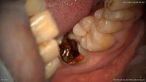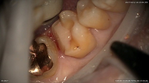 さて今日は前回右下の重症のむし歯を治療、型取りし本日セラミックのセットだった症例です。
