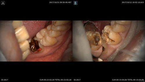 マイクロスコープだと目の前でこの様に術前(右)術後(左)をお見せできるので分かりやすいですね。