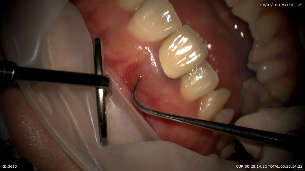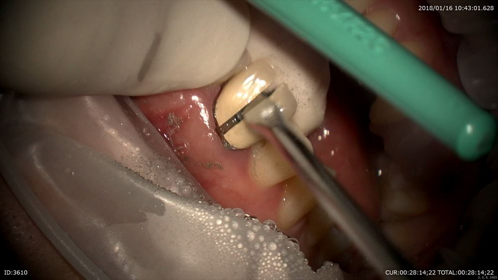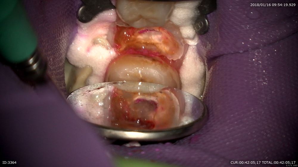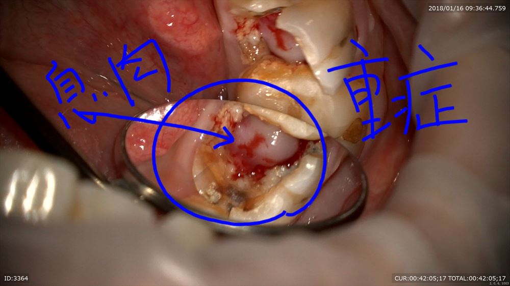 歯科ドックを行い徹底的に調べました。すると一筋の光が。息肉を丁寧に除去。