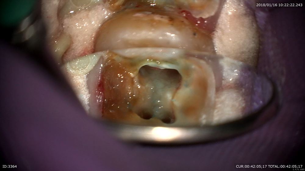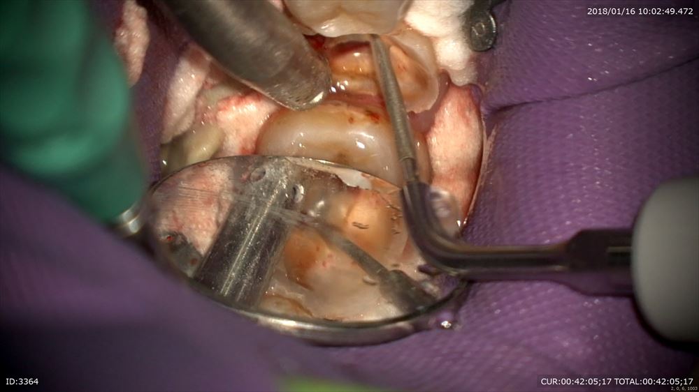 1時間の格闘。4根すべて開通し根管形成まで終了。