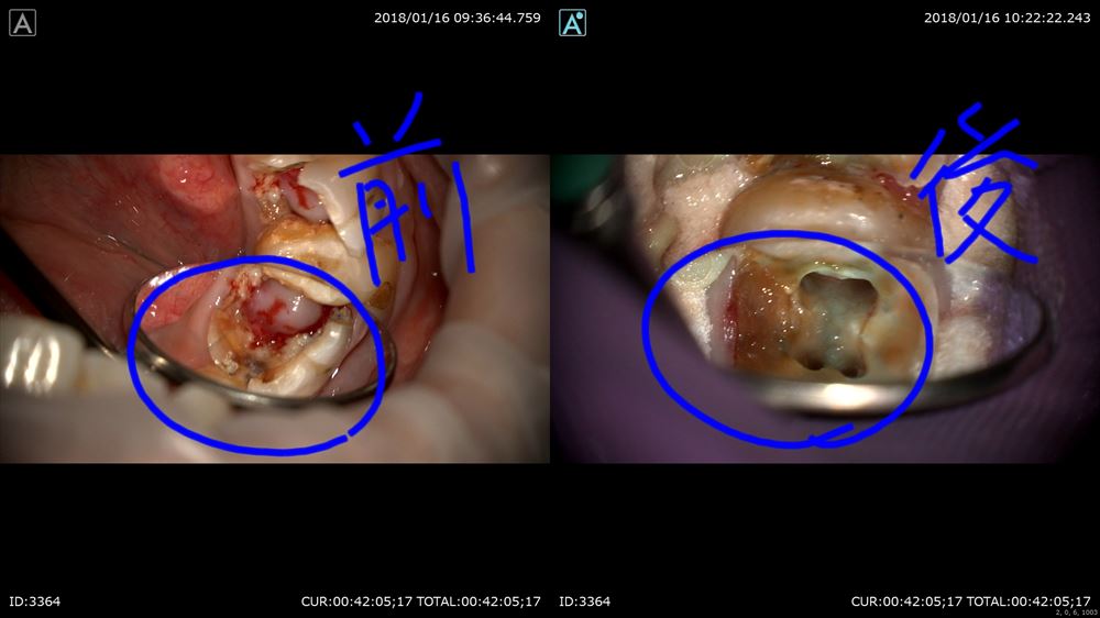 本日のマイクロスコープ治療(重症でも救える精密根管治療、精密根管治療の準備)