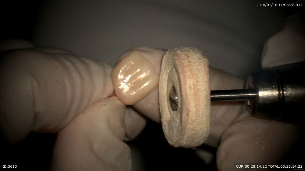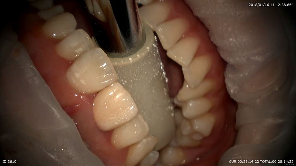 なるべく質感も同じにして前方のガイドもしっかりつけないといけないから。オーダーメイドの仮歯。
