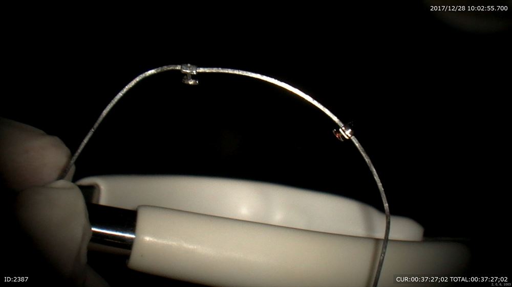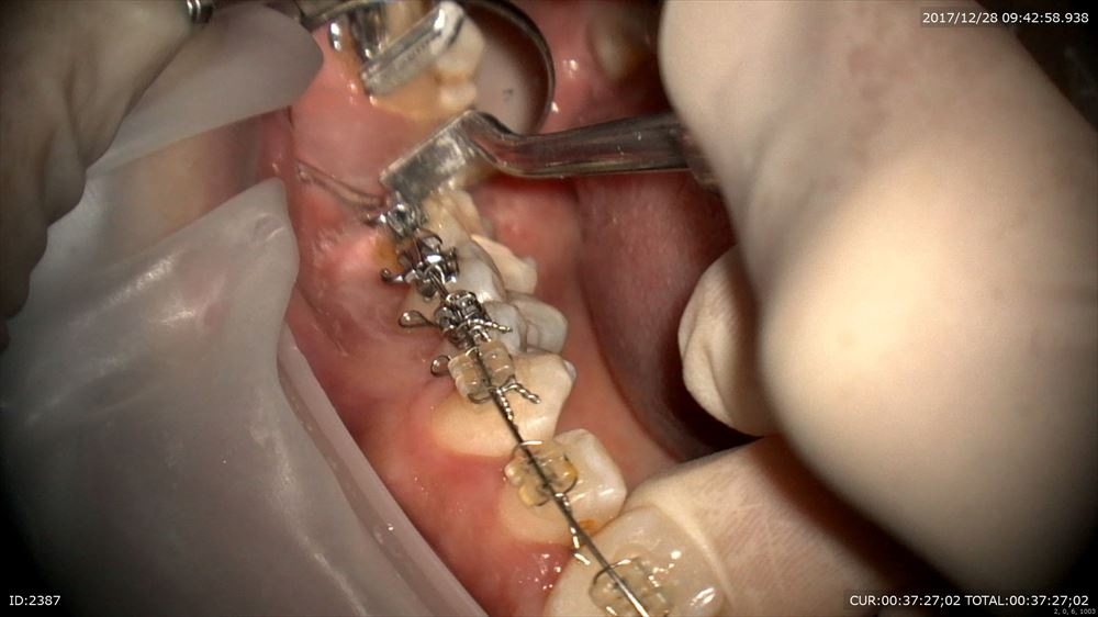なるべくニッケルチタン系のワイヤーを使うことで弱い力で歯を動かしていきます。痛みが少ない矯正が可能になります。来年春に外す予定です!!