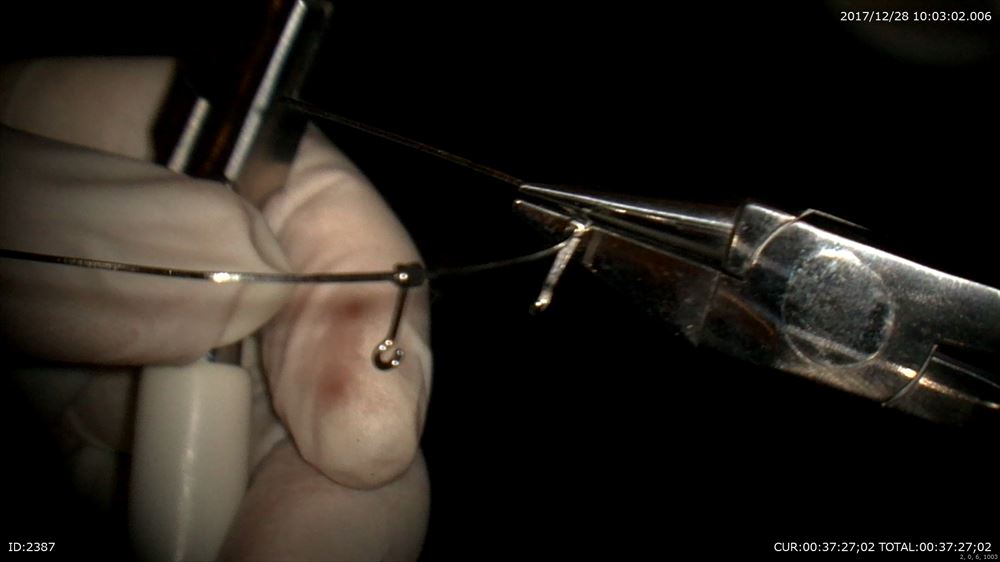 犬歯関係がよくないのでこんな機械で針金に熱を加えニッケルチタンワイヤーを曲げていきます。