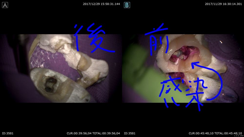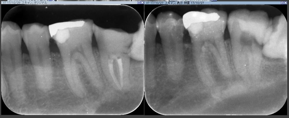 術前(右)根管充填後(左)