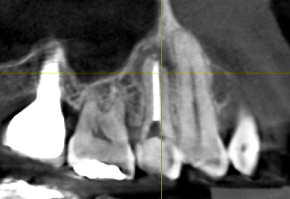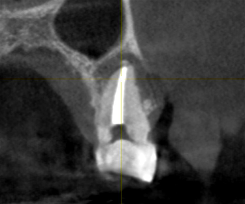 私はこのような状態でも精密根管治療と矯正、そしてクラウンレングスニングという術式で歯の保存が可能です。ただこの患者さまと、治療費、回数、10年予後など総合的なお話しをさせて頂き