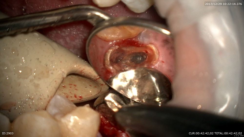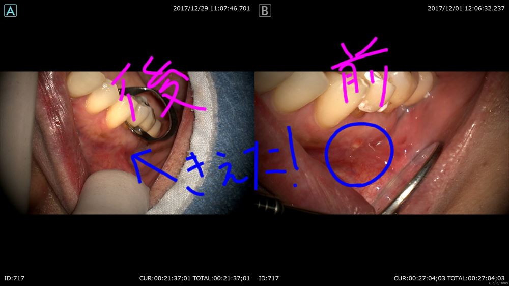頬側の骨がないですね。この治療で再生してくるはずです。