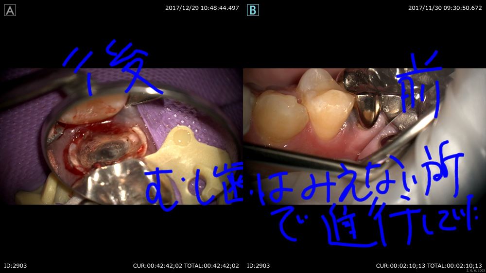 早速嬉しい事が!下記の様に母親は重症の虫歯が根っこの先に移動し「歯茎の異常」を呈していました。前回から始まった精密根管治療により腫れと症状はすっかり良くなりました。嬉しい!!今日は症状がないので2回目で根管充填。治療が終わりました。ご紹介します。