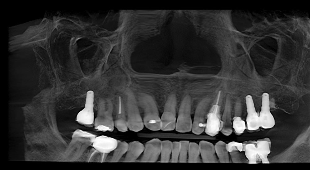 ちなみに下記のCTに写っているインプラントは私がすべて行った物です。下もあわせて5本。すでに下は9年経過です。まったく問題ありません。