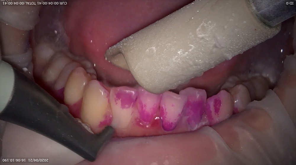 どうやって抑制していくかというと、当医院ではエアフローパウダーを使用していきます。