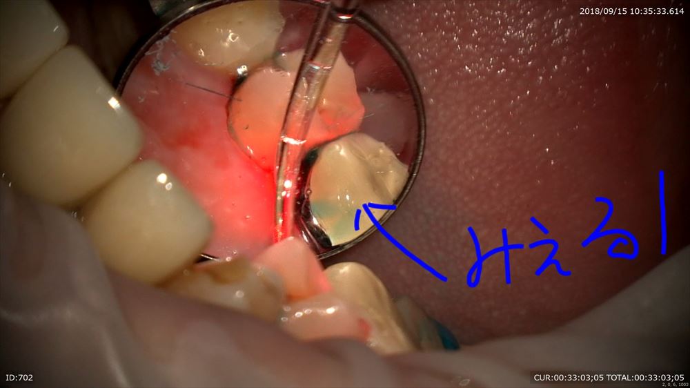 歯茎をどかしているのが解ると思います。切らないから痛くない。歯茎が下がらない。
