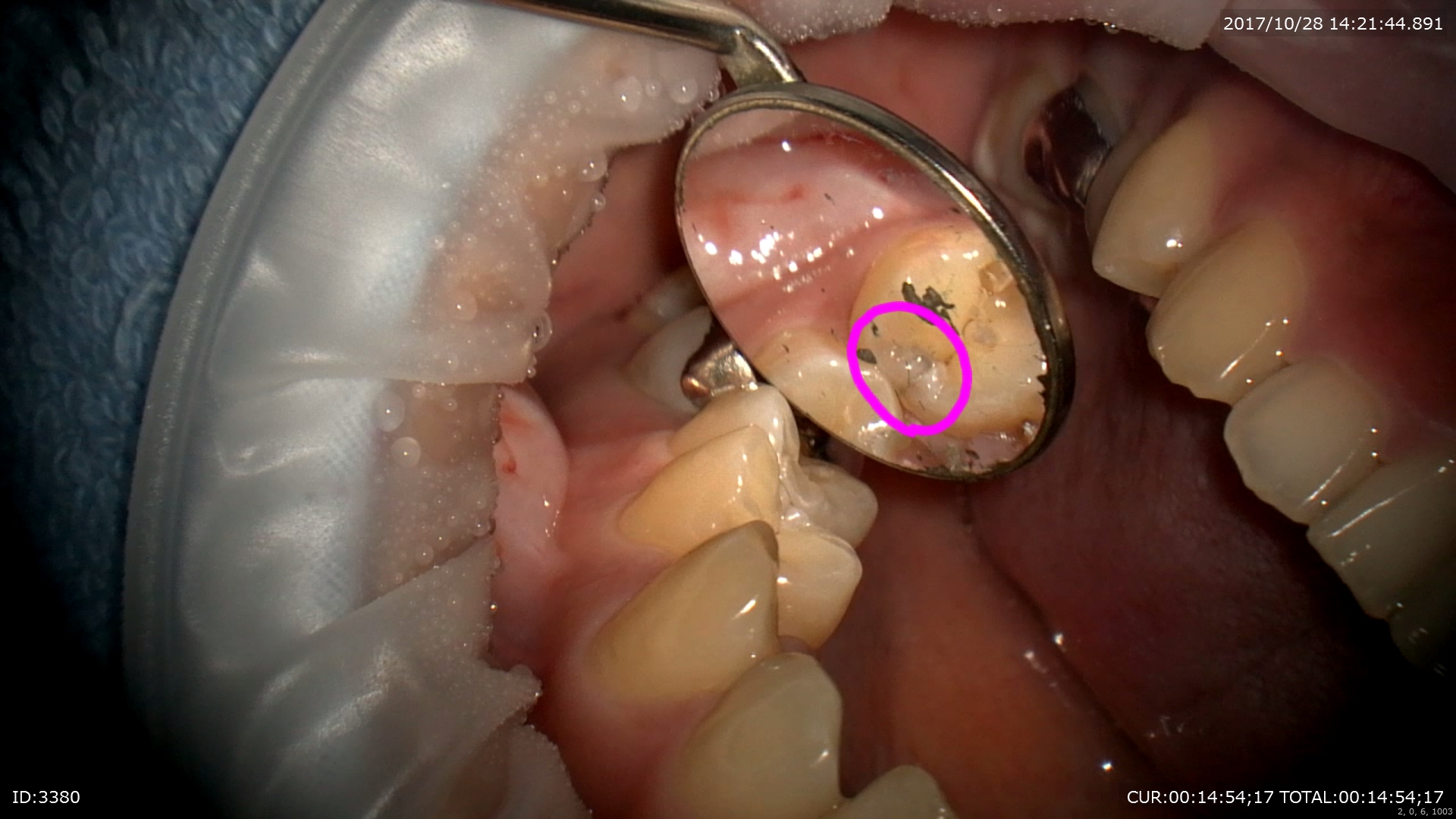 歯と歯の間にむし歯が出来るケースが1番多いのですがその診査の為にマイクロスコープを使用しました。