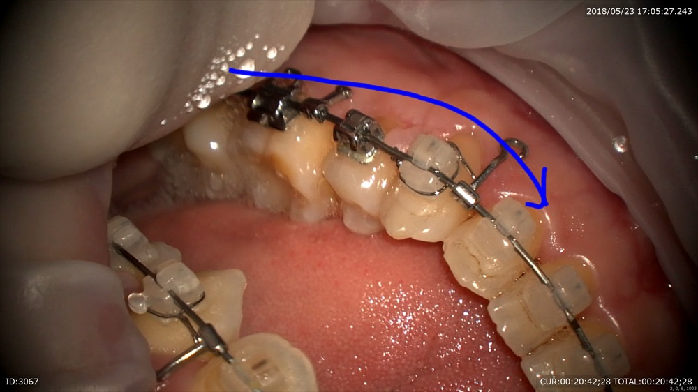 今日のケース。前歯のリトラクションが終了。その反作用でかみ合わせが若干深くなっています。