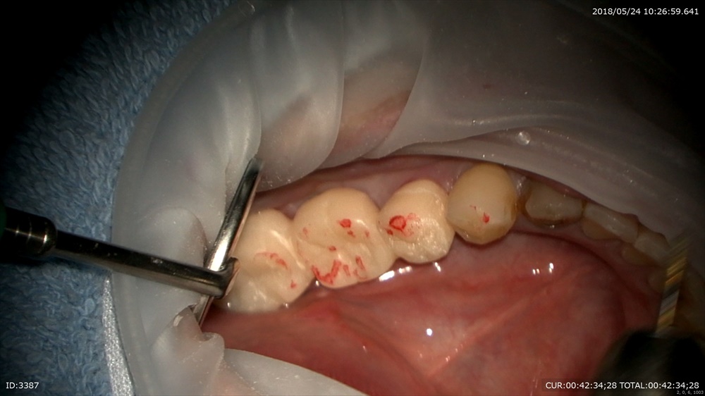 仮歯セットポンティック部を押しています。