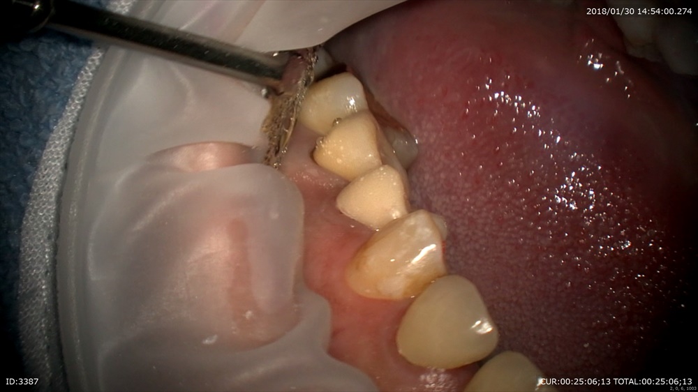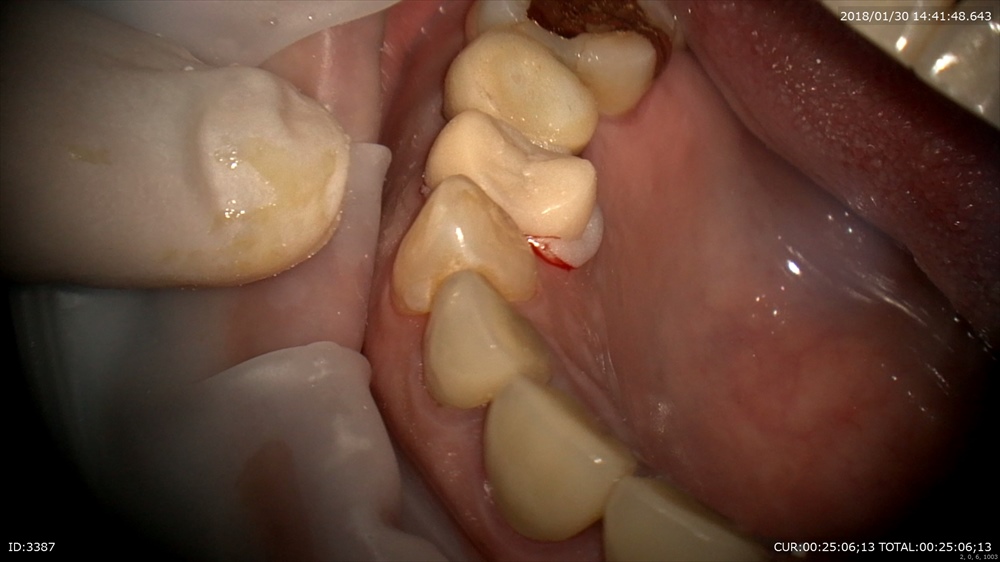 この方他院で治療後再発。膿が歯茎からでてきました。