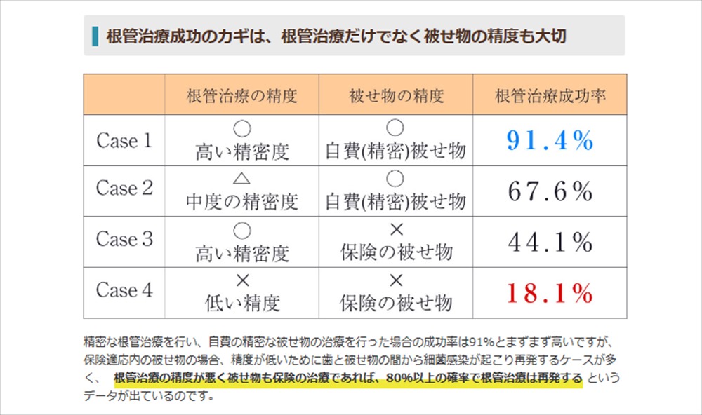 精密根管治療してもかぶせ物が精密でないと治癒率が下がるという論文がアメリカの大学からでています。