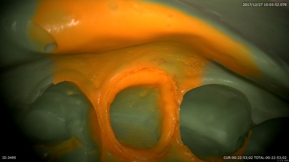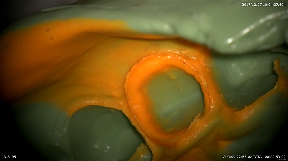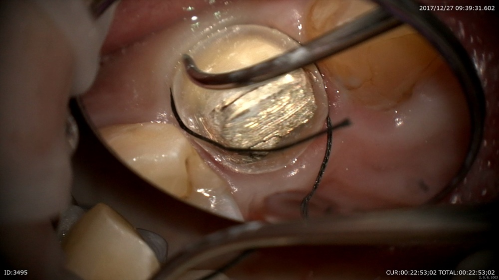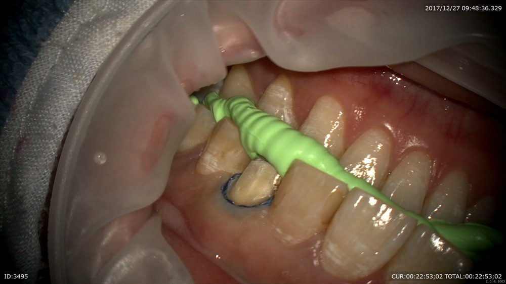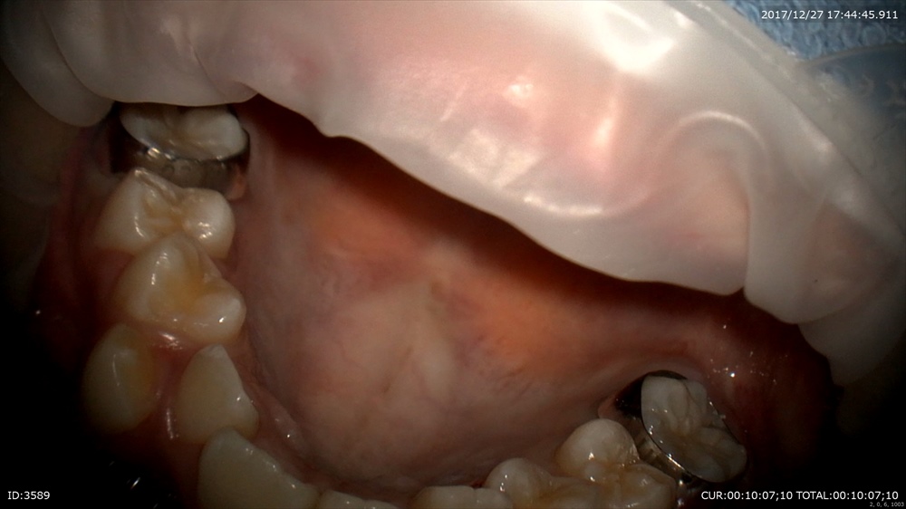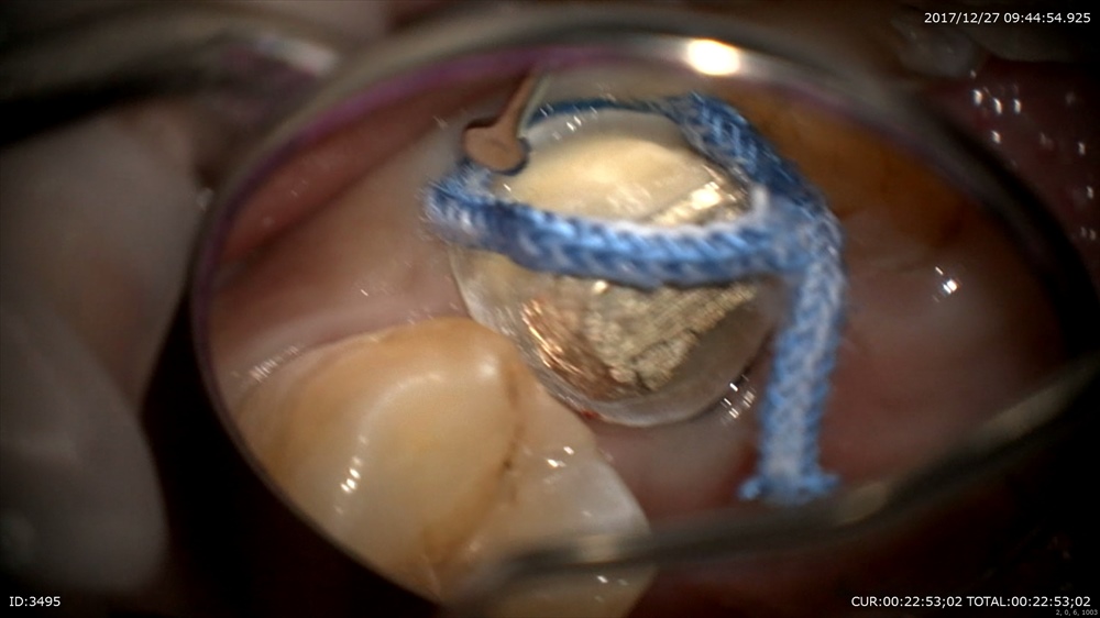 精密な型取り。左上の糸きり歯は大切な歯です。ハイブリットクラウンの型取り。