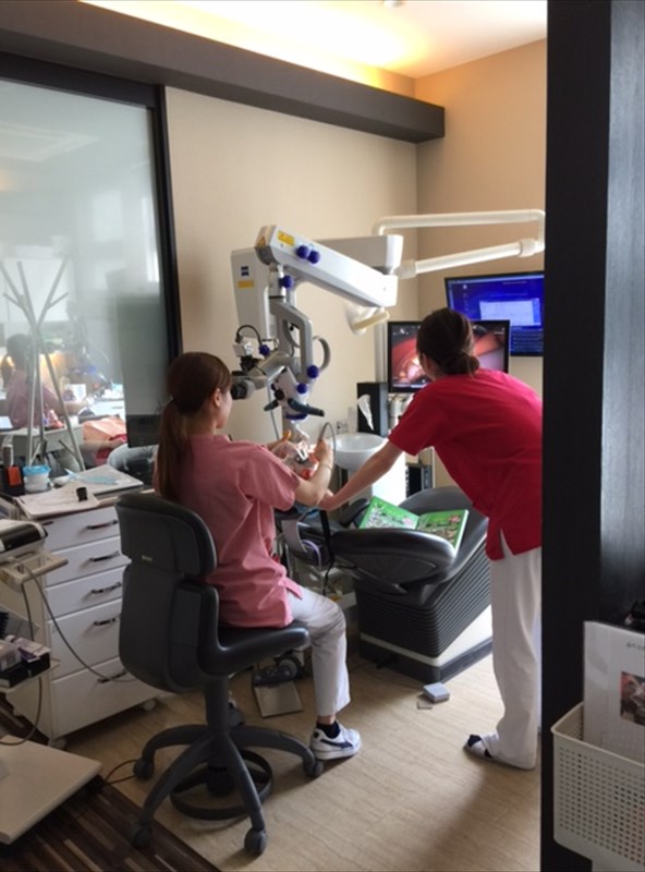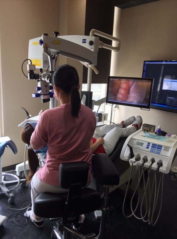衛生士が当院には3人いますが皆でマイクロスコープを使用したデブライドメントを練習しているのです。