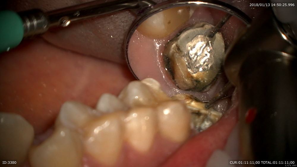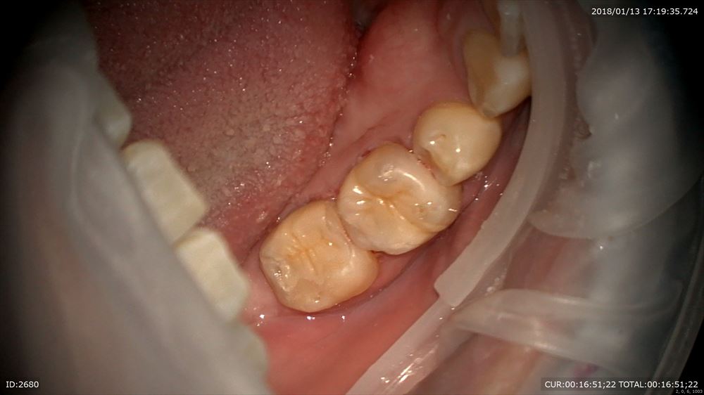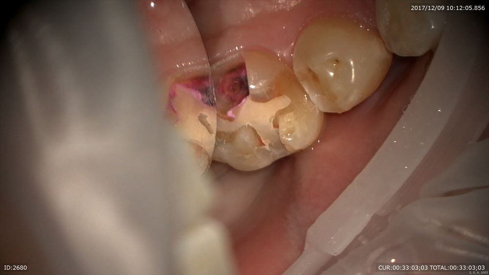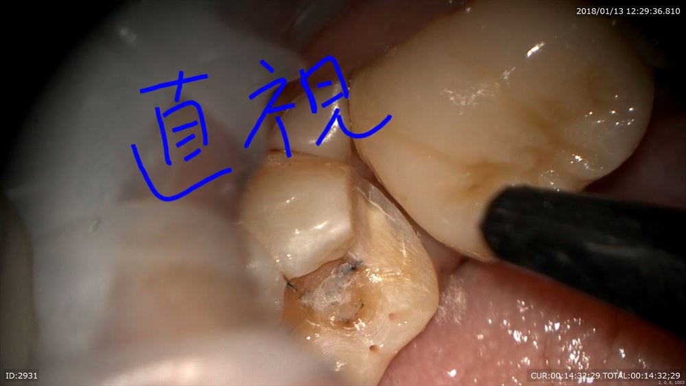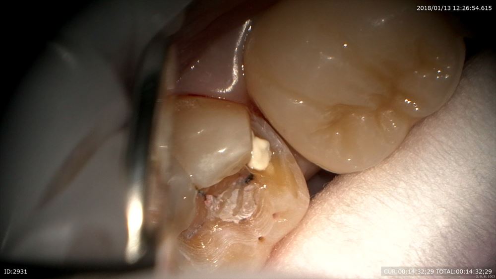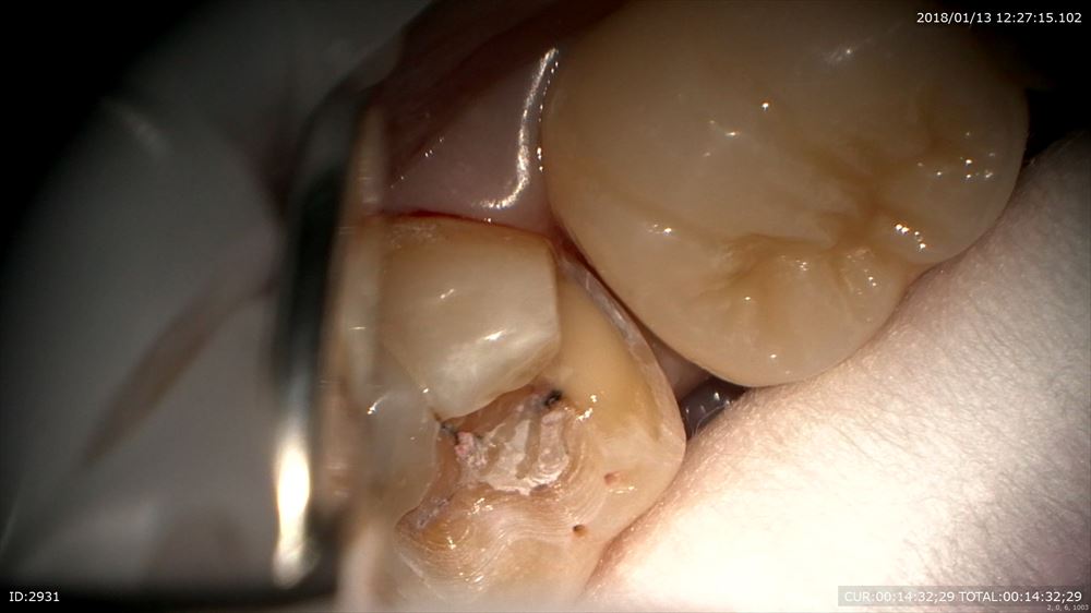 最後のケースは虫歯治療、奥歯編。マイクロスコープを使用すると通常の機種はミラーテクニック(鏡越しに治療)で行う事が多いです。しかし当院で使用しているカールツアィスピコモラーはモラーシステムがついていますので奥歯も直視で行える事が多いです。