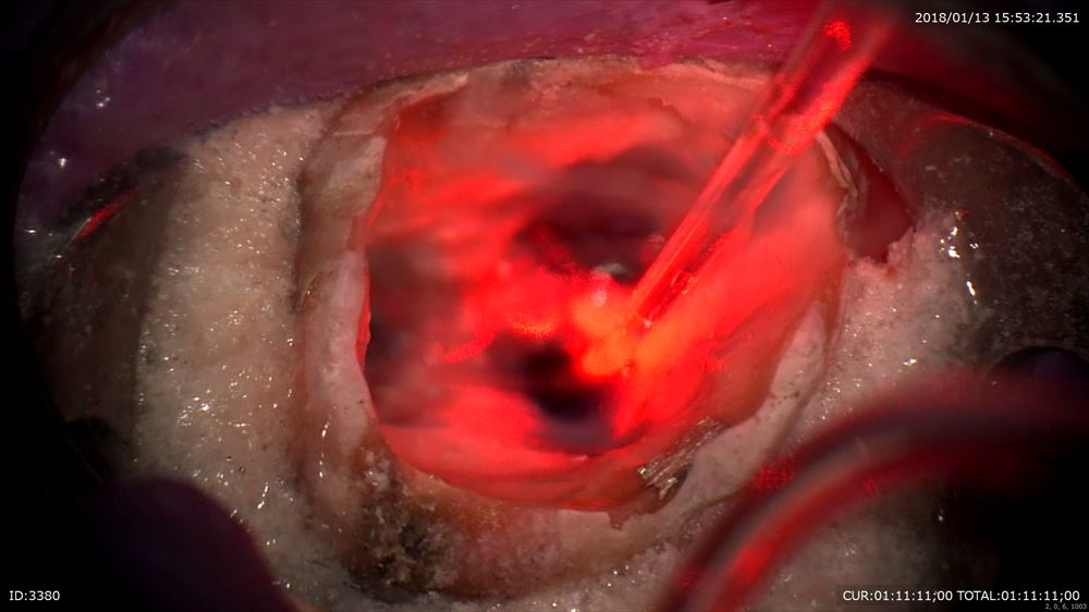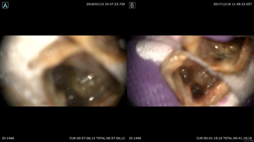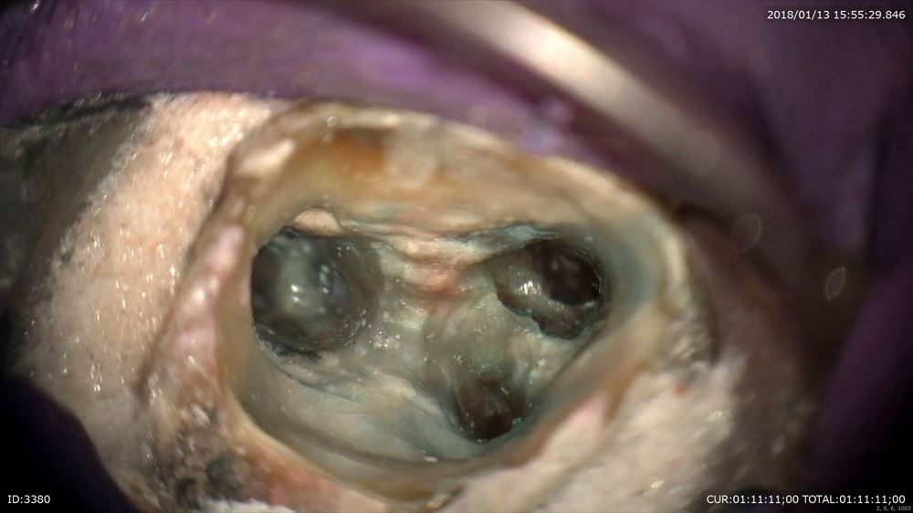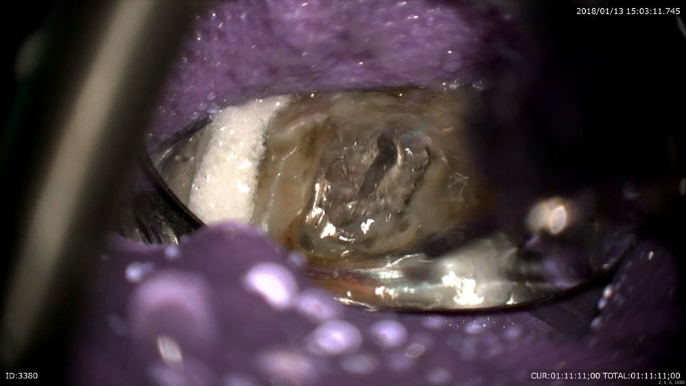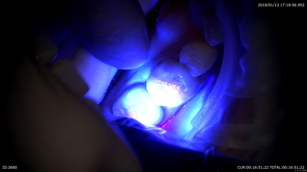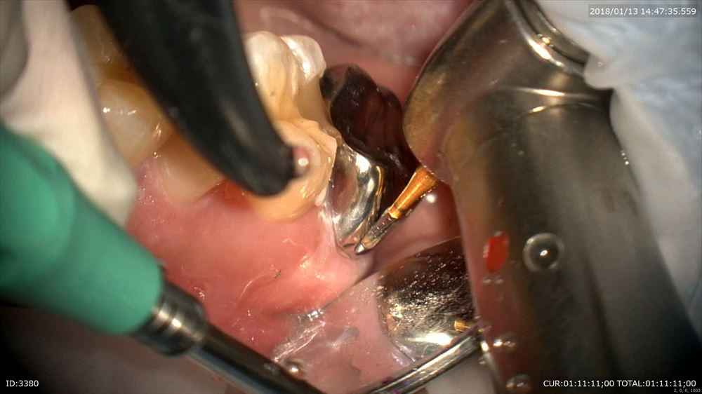 最後のケースは虫歯治療、奥歯編。マイクロスコープを使用すると通常の機種はミラーテクニック(鏡越しに治療)で行う事が多いです。しかし当院で使用しているカールツアィスピコモラーはモラーシステムがついていますので奥歯も直視で行える事が多いです。