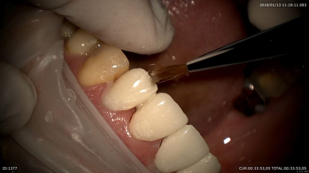 マイクロスコープ治療で仮歯を調整。