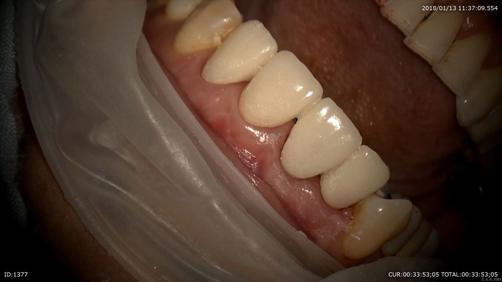 歯茎の移植を私が1年前に行い歯茎のボリュームを作りました。手術画像は割愛します。