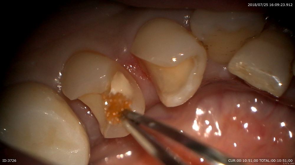 マイクロスコープを使用することでこのように形成もスムーズに歯茎を傷めず治療が可能です。