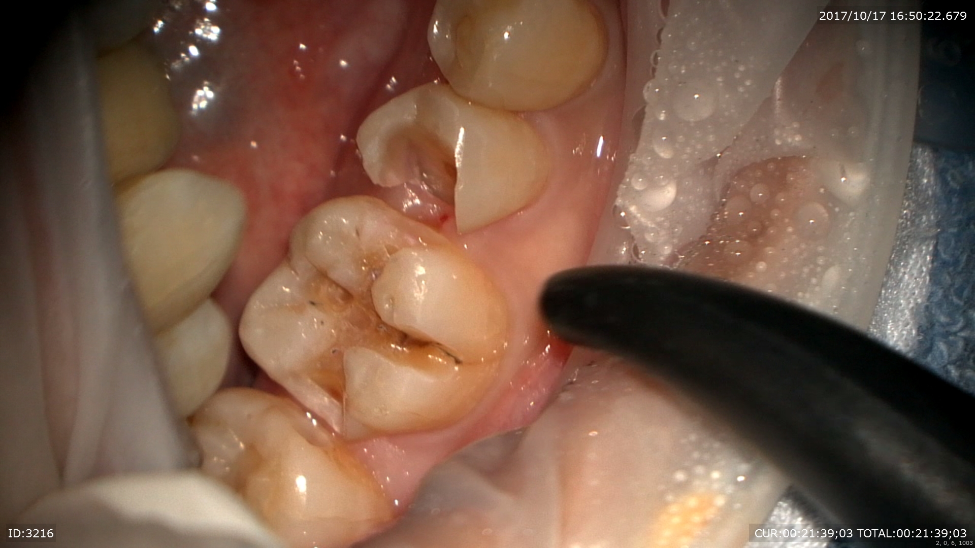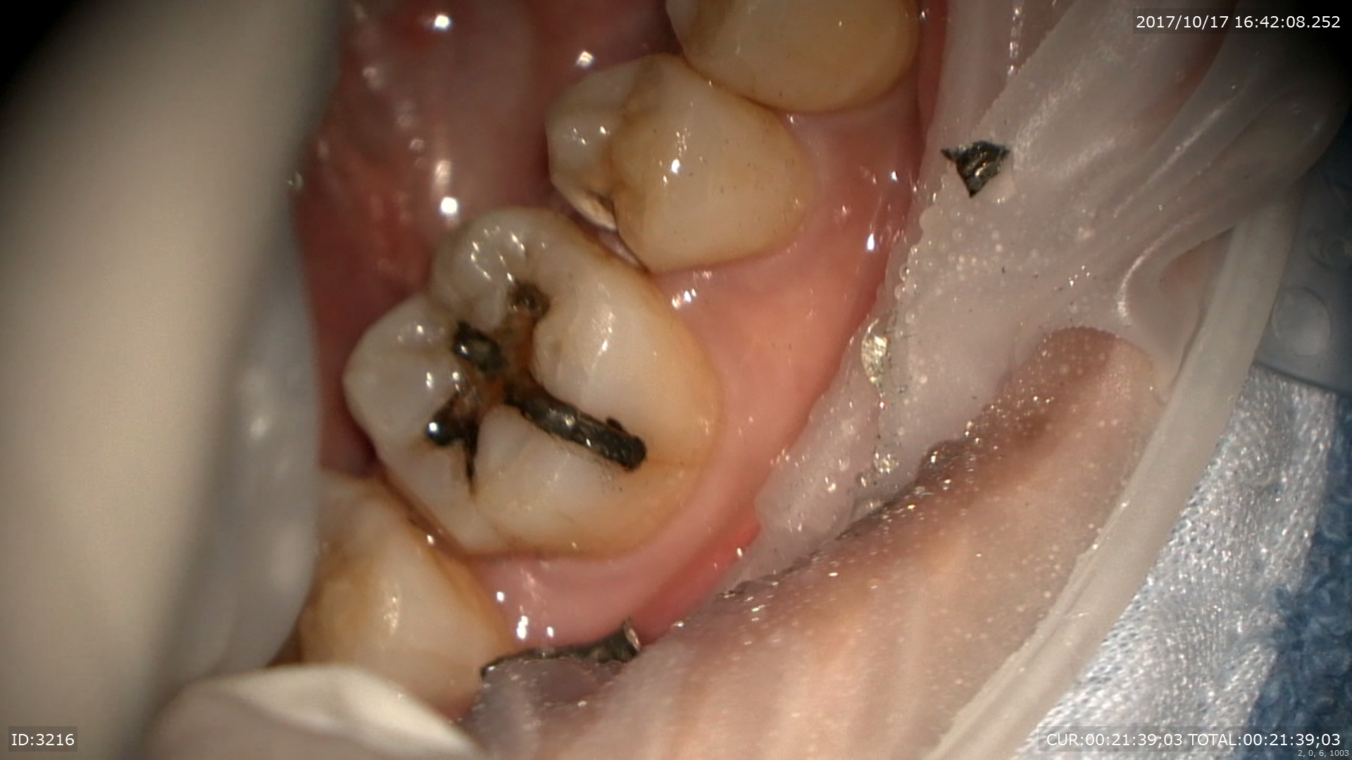 丁寧にむしばをマイクロ下で取ります。