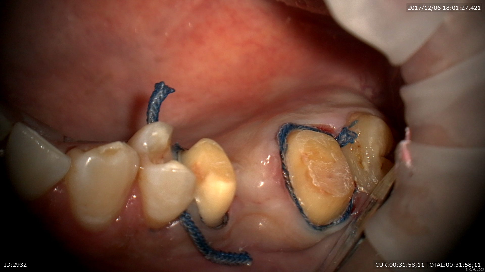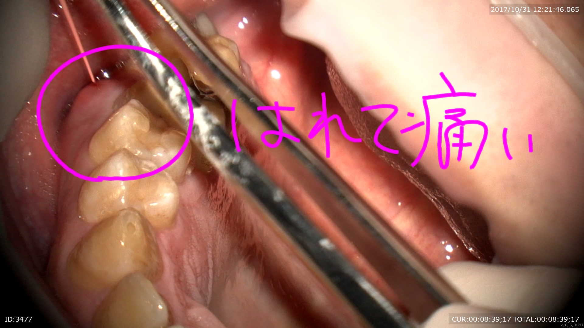 糸で圧排(無痛下)