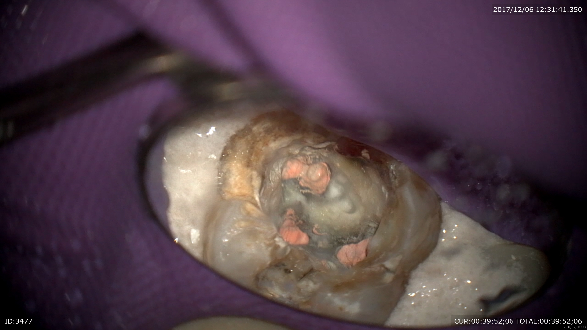 膿の出口。腫れていますね。もっと早く来ていただきたかった。