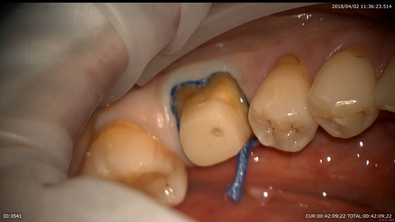 痛くない様にするにはマイクロスコープを使用します。