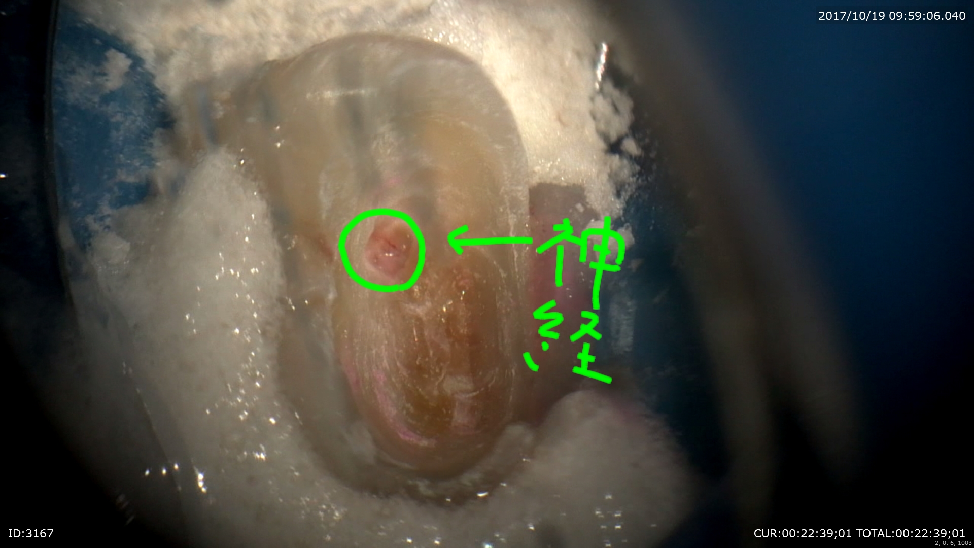 まず、ラバーダム下(下記参照)で行われていないと唾液の中の菌により神経が直ぐ感染します。