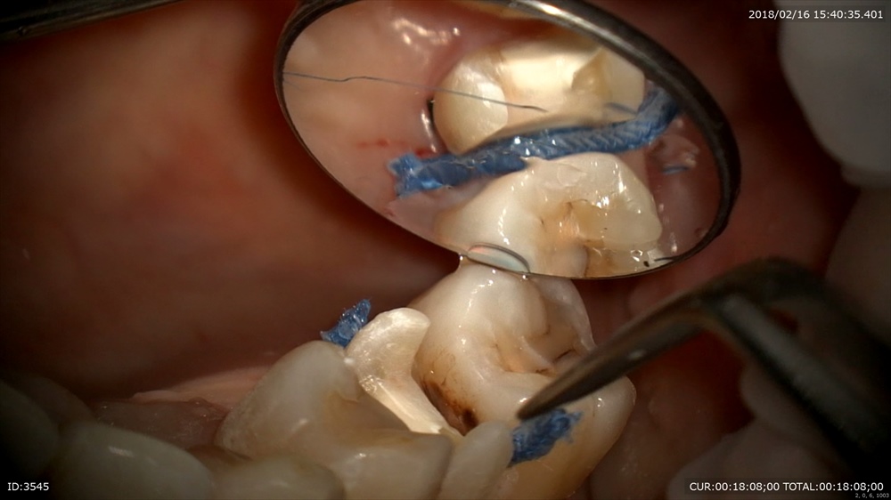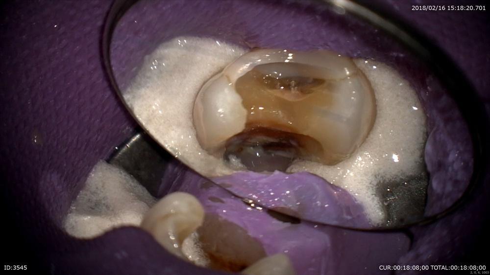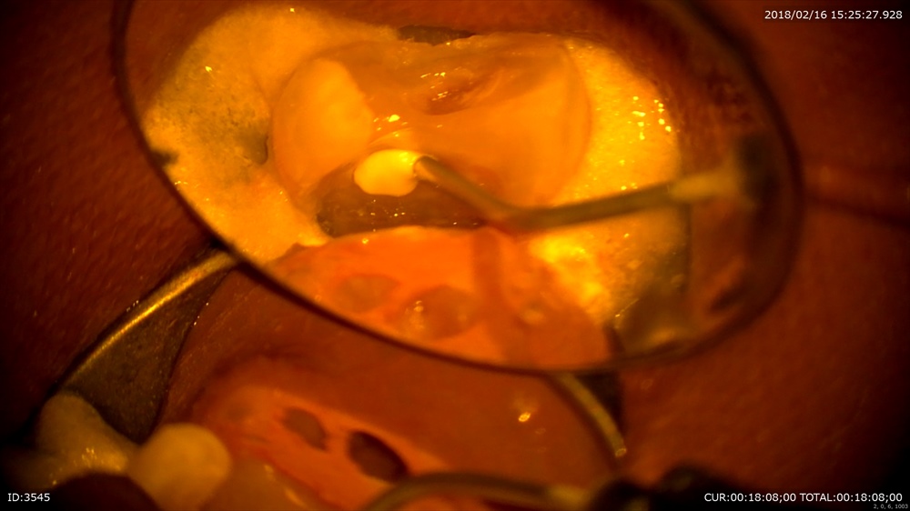 準備が大切。どんな治療になるにしても神経近くを触れる時はラバーダムをして唾液感染を防ぎます。