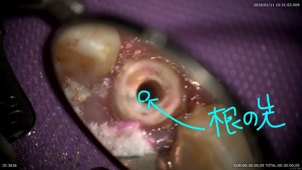 マイクロスコープは根の先までみえます。見えるから無痛で感染を取れます。