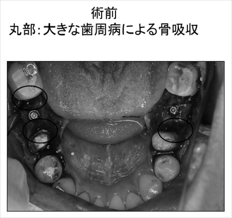 検査の結果重症の歯周病で特に奥歯の骨が吸収されていました。