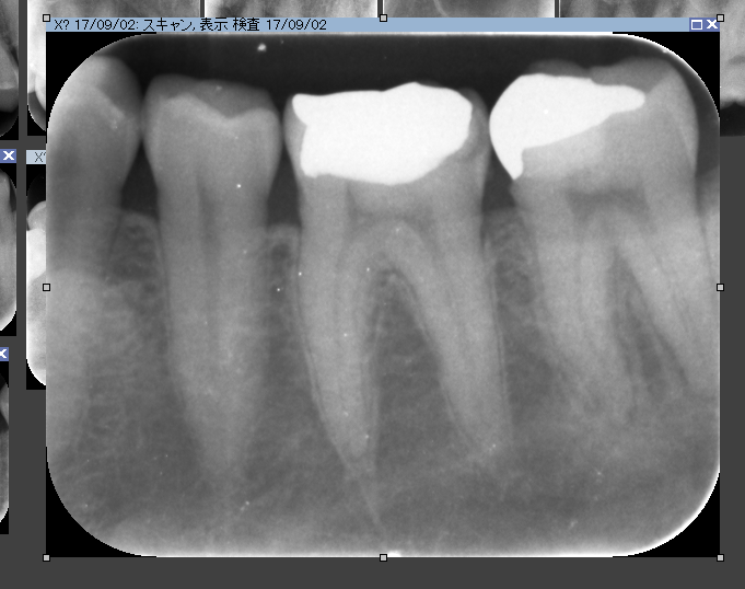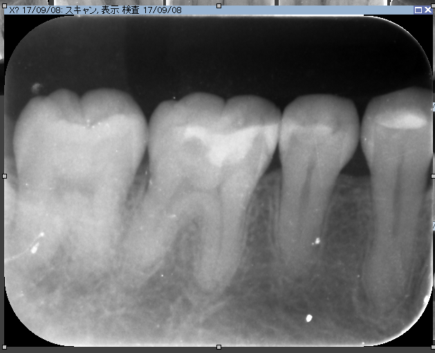 いつも通りまず歯科ドックをして原因を調べます。ドックの結果神経が死んでいました。しかし今回わからなかったのは分岐部といって歯の又の部分にも病変がありました。。。