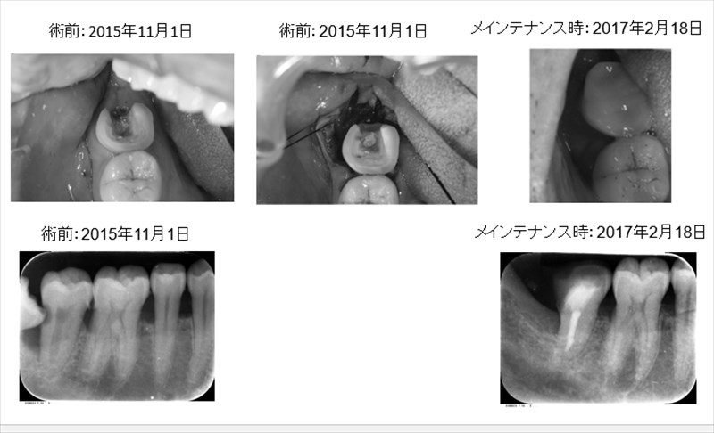 当院ではMTAによる精密根管治療、歯肉弁根尖側移動術、骨整形により保存が出来ました。