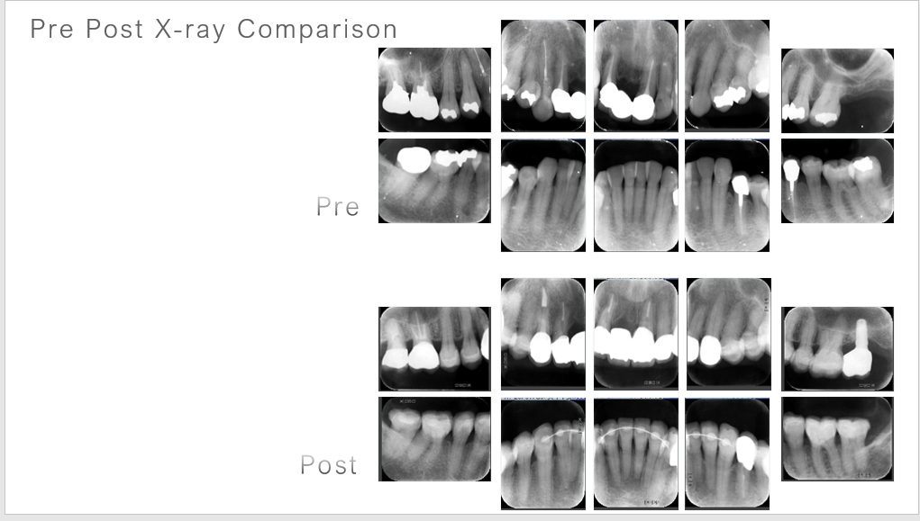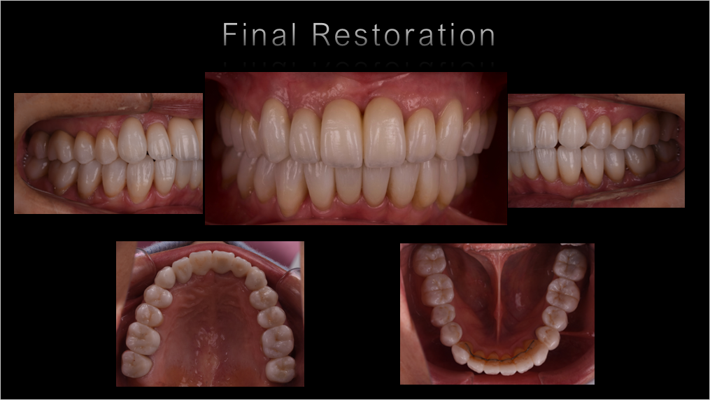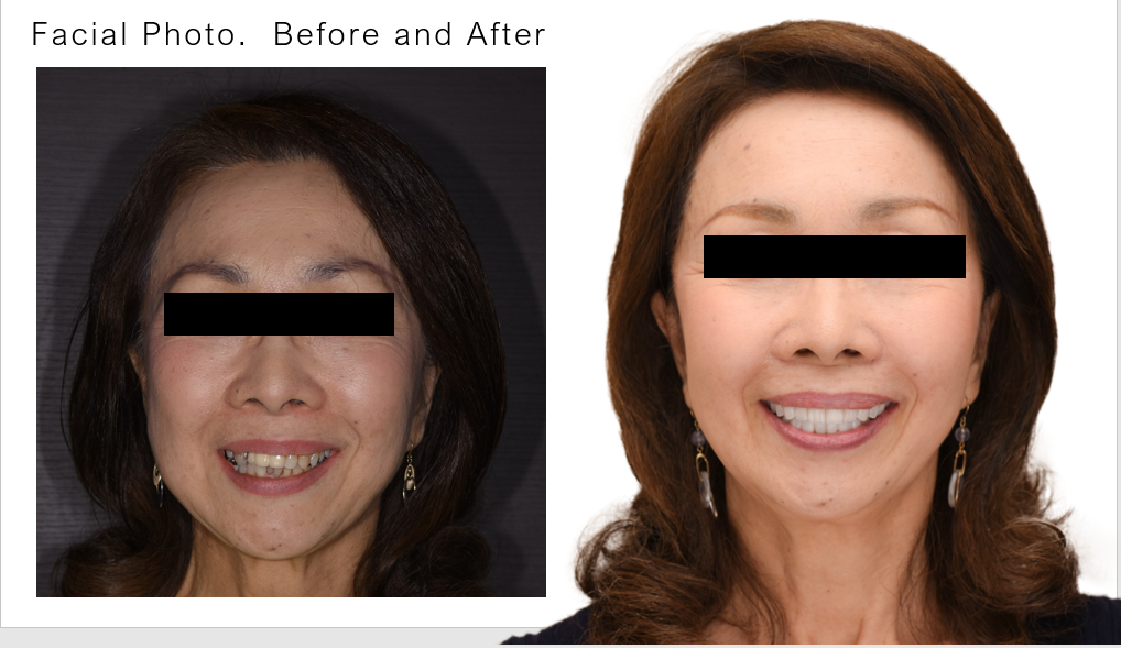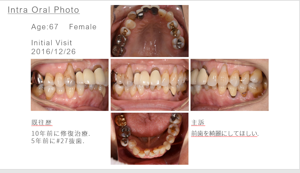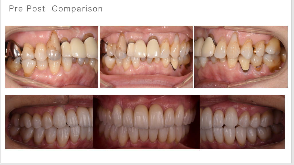 根本的な解決の為、歯科ドックを行い、歯列矯正、歯肉移植、インプラント、かみ合わせ治療、セラミックを包括的に駆使し先日治療が終わりました。
