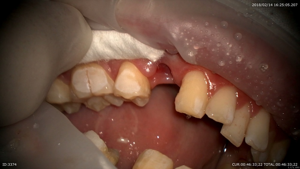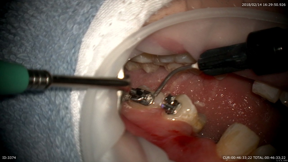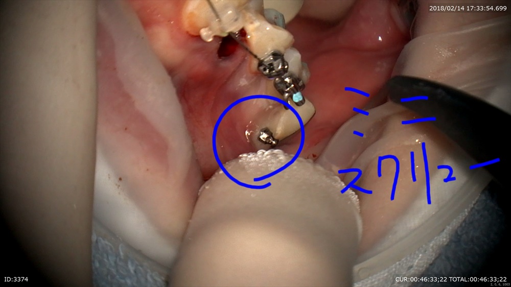 抜歯、お掃除、装置装着、今日はミニスクリューを2本。これを同時に行います。