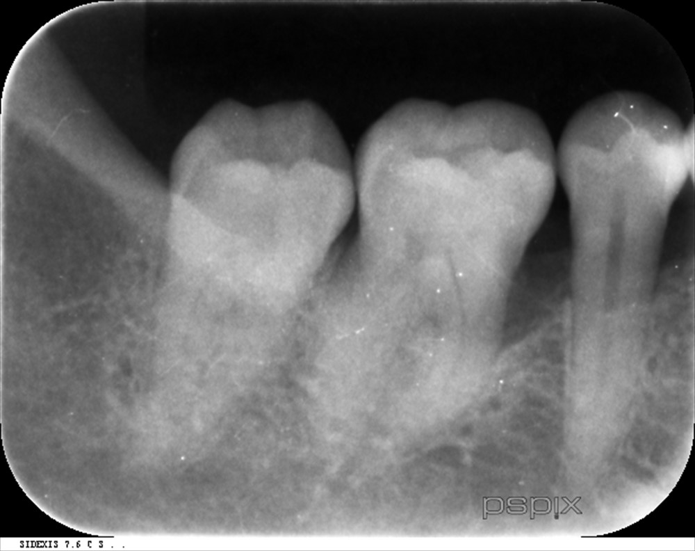 ここは垂直的に骨が無くなっていました。ポケットは7mm。