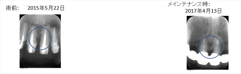 前歯の再生療法と精密根管治療で歯を保存した症例