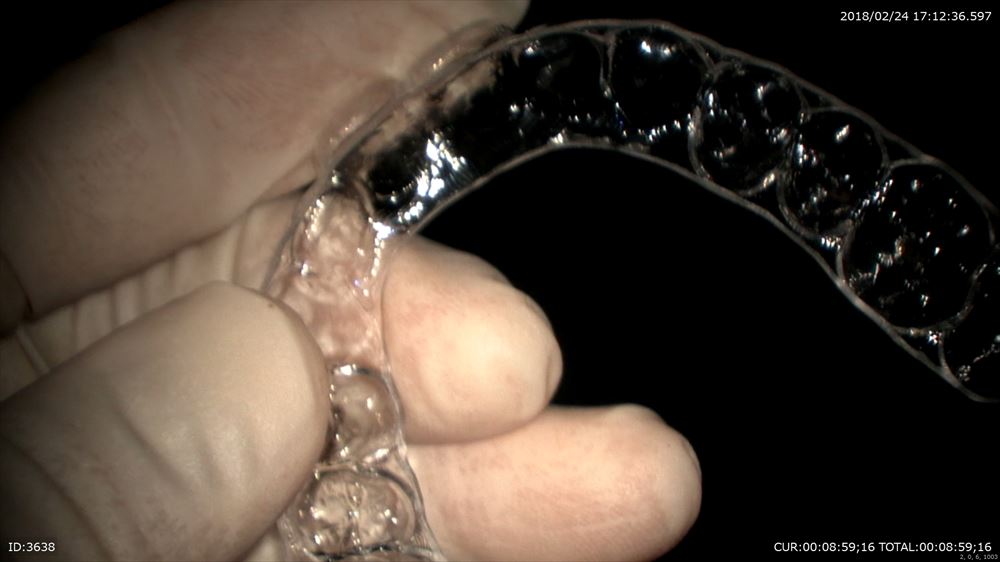 今はこのようにデジタル装置で型をとり、計測し3Dプリンタでマウスピースを作成。