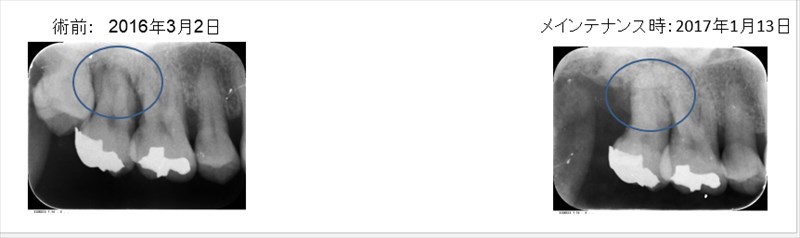 この症例も再生治療など手術はせずに基本治療だけで治しています。