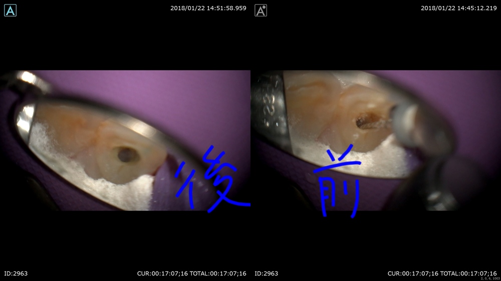 術前:右 術後:左 綺麗になった!!これで保存ができます!!次回で根管治療終了。2回で終了
