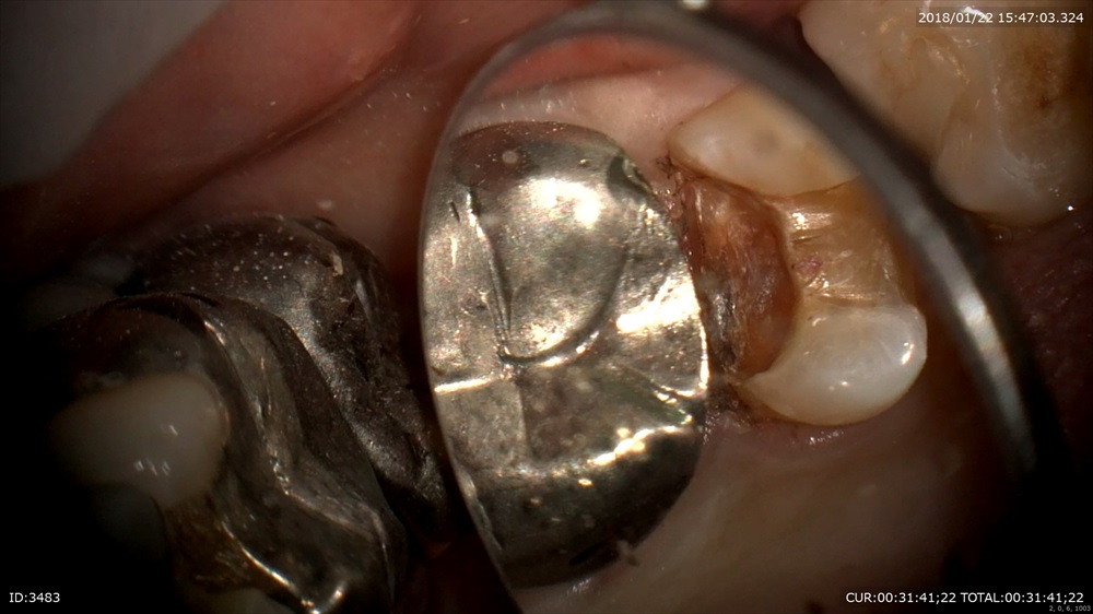 銀歯が取れたで来院。歯科ドックで歯茎の中までむし歯と診断しました。