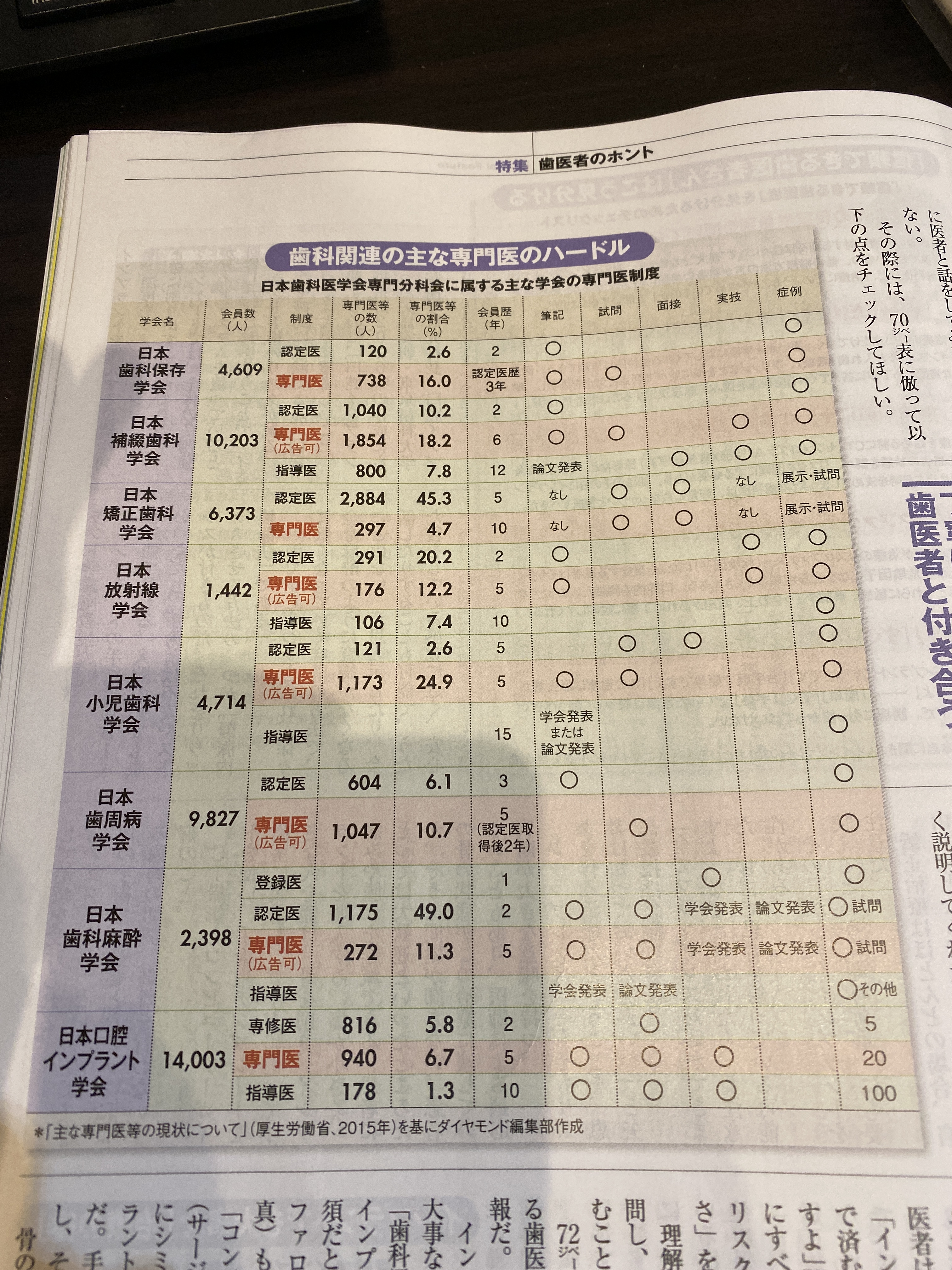 その雑誌にはこの様に専門医になる為のハードルなどが書かれていました。歯周病専門医はここにも記載があるように未だに合格率10%の難関です。