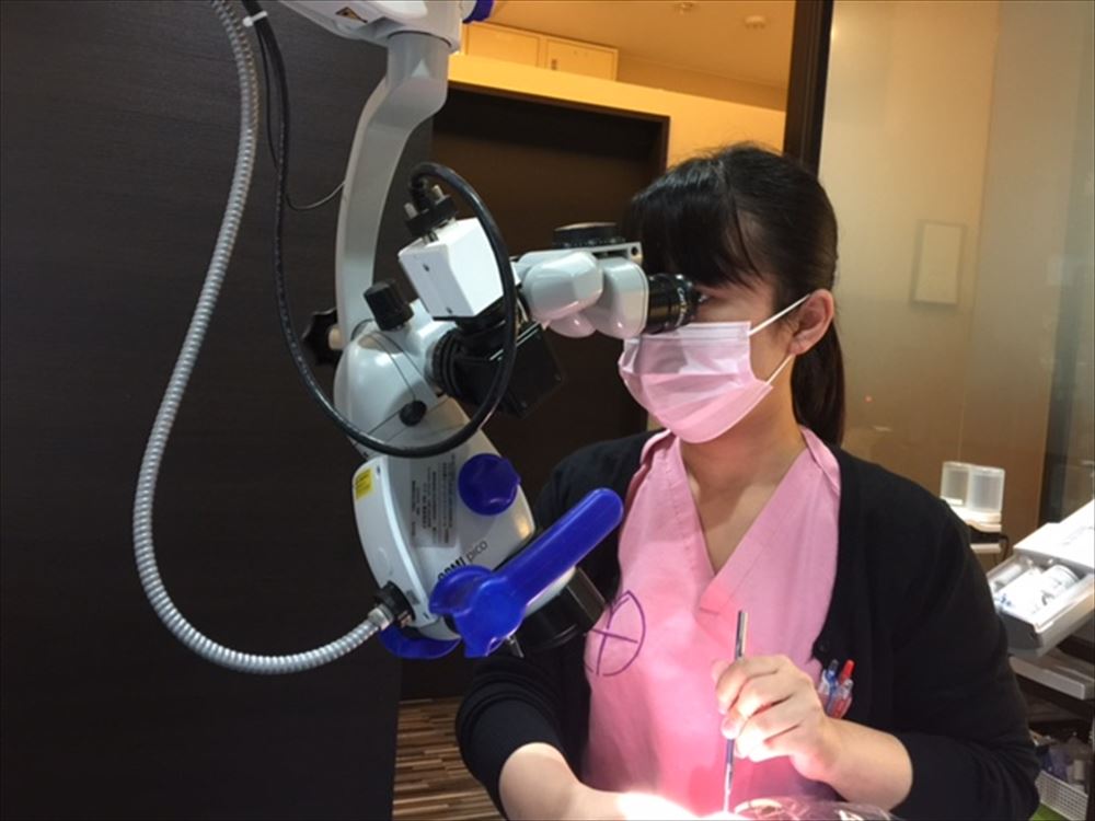 堂々とマイクロスコープを使用しデブライドメント。