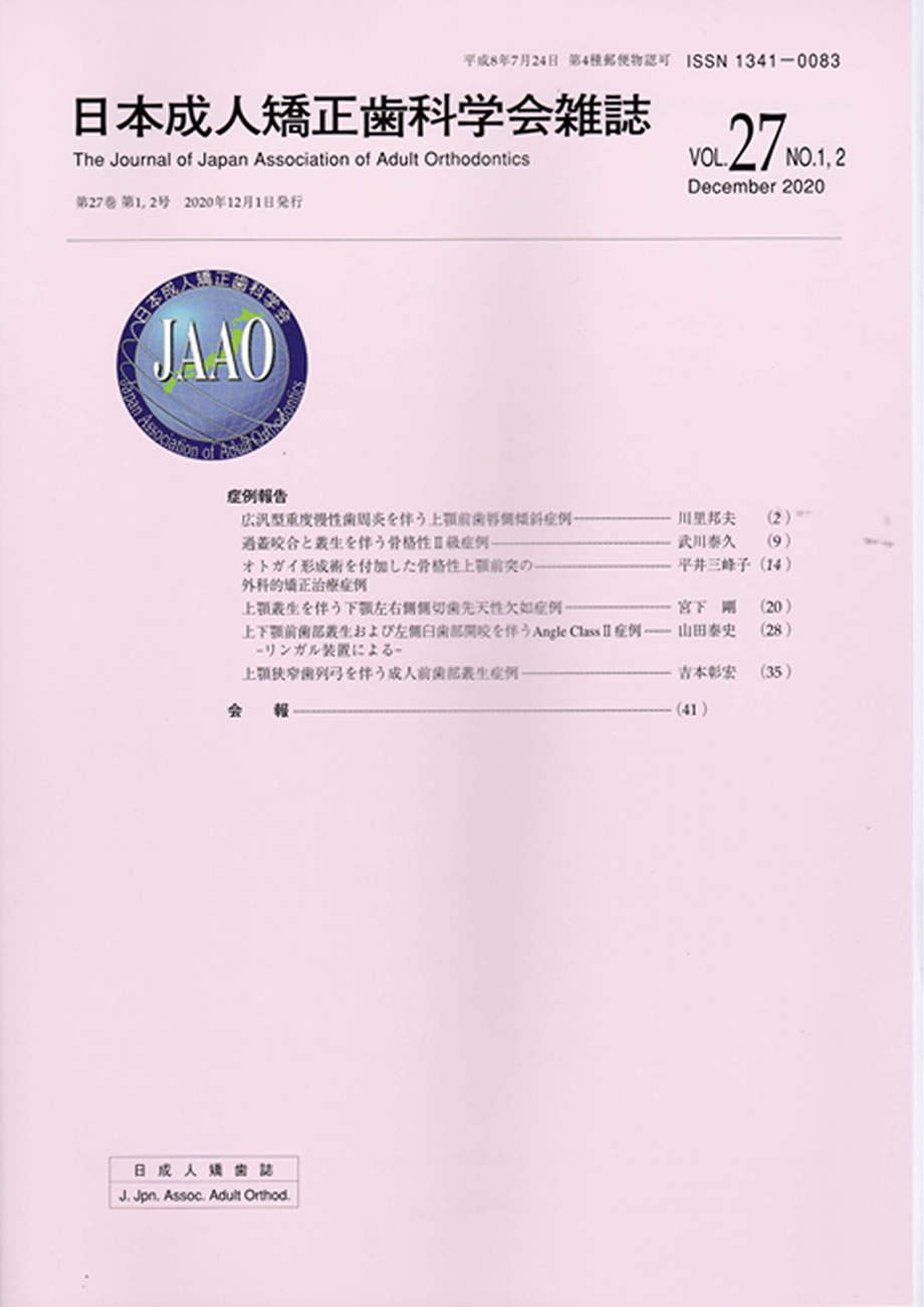 今日日本成人矯正歯科学会誌に私の論文が載った物が手元に届きました。