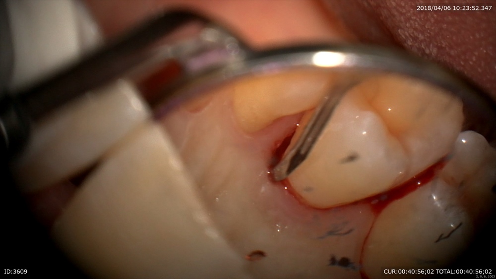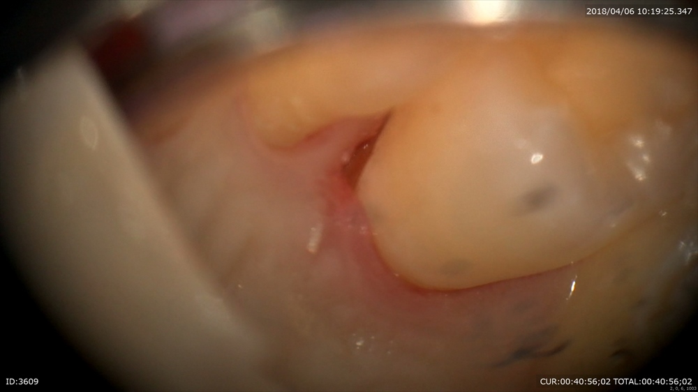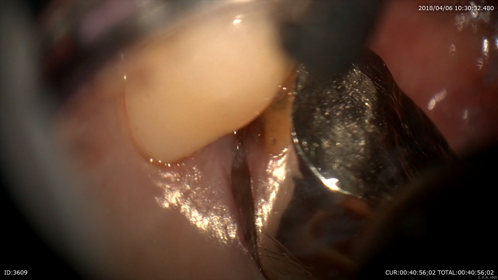 今までの歯周病治療は歯茎の中が見えない為手探りで刃物を当てていました。その結果健康なセメント質を削り取り、そのくせ歯石を取り残し治らないという状態でした。だから歯周外科を行い、歯茎を大きく開いて見える状態でとっていました。結果この行為も手術ですので